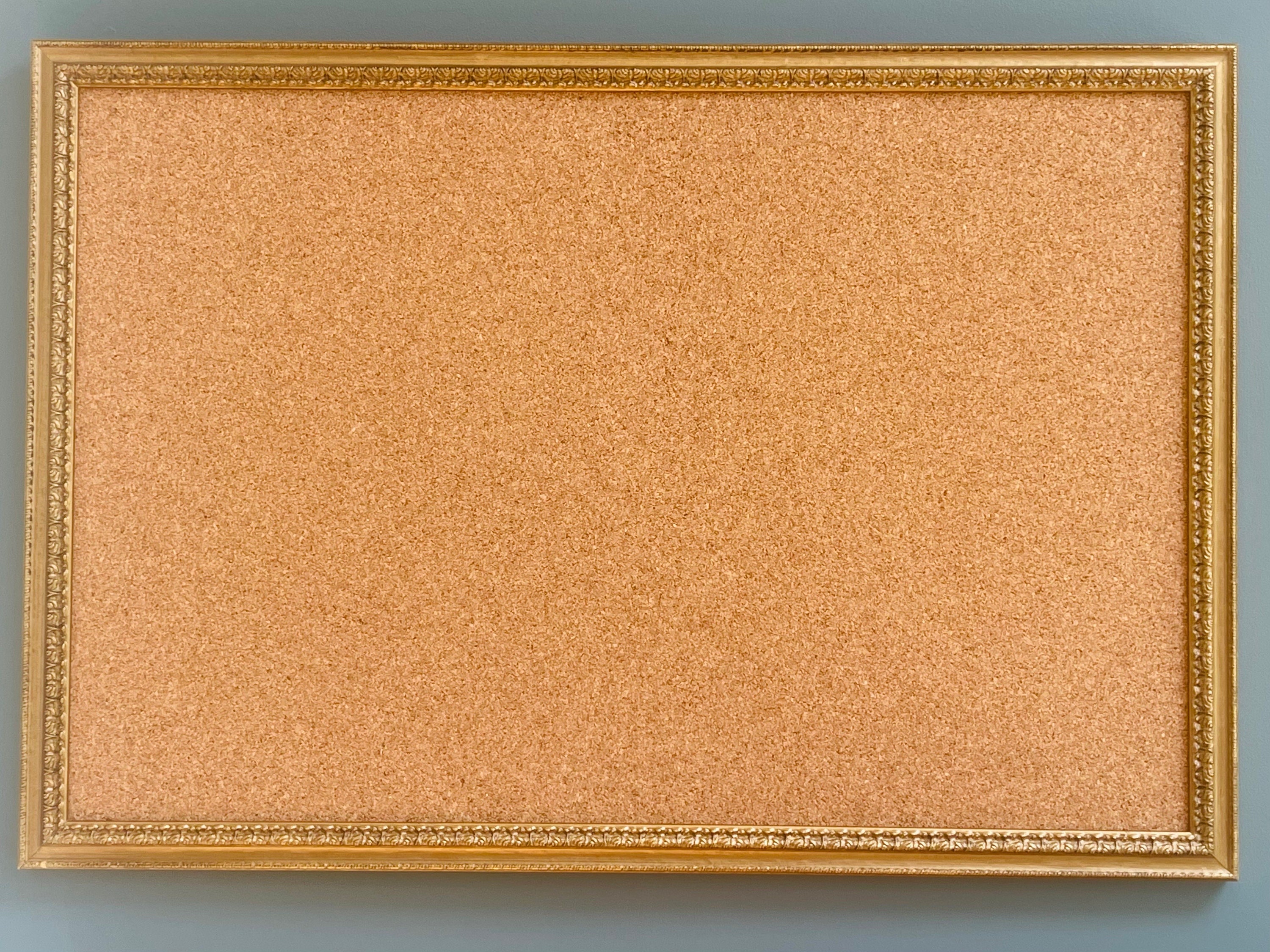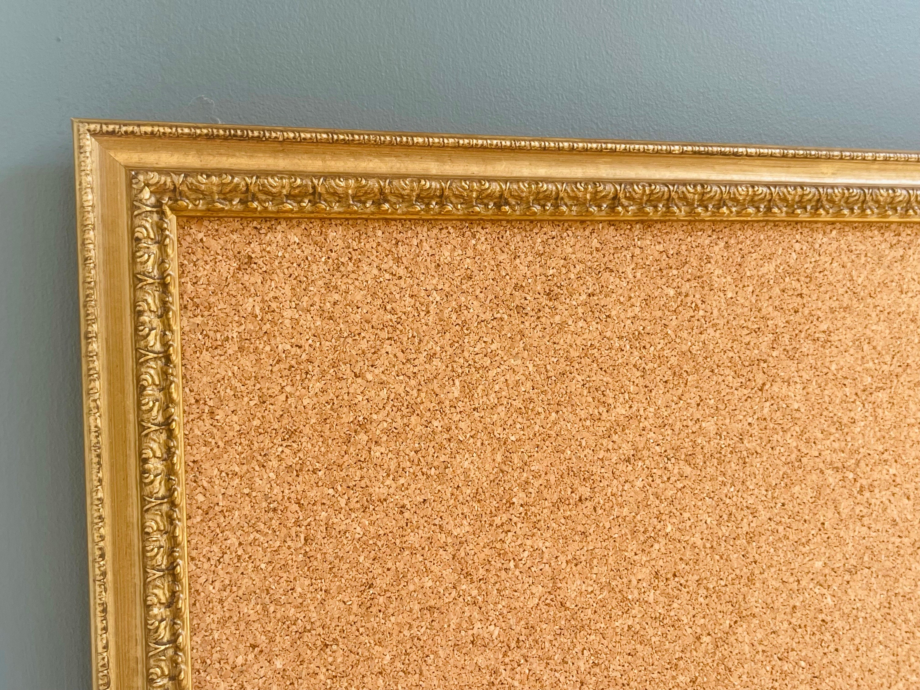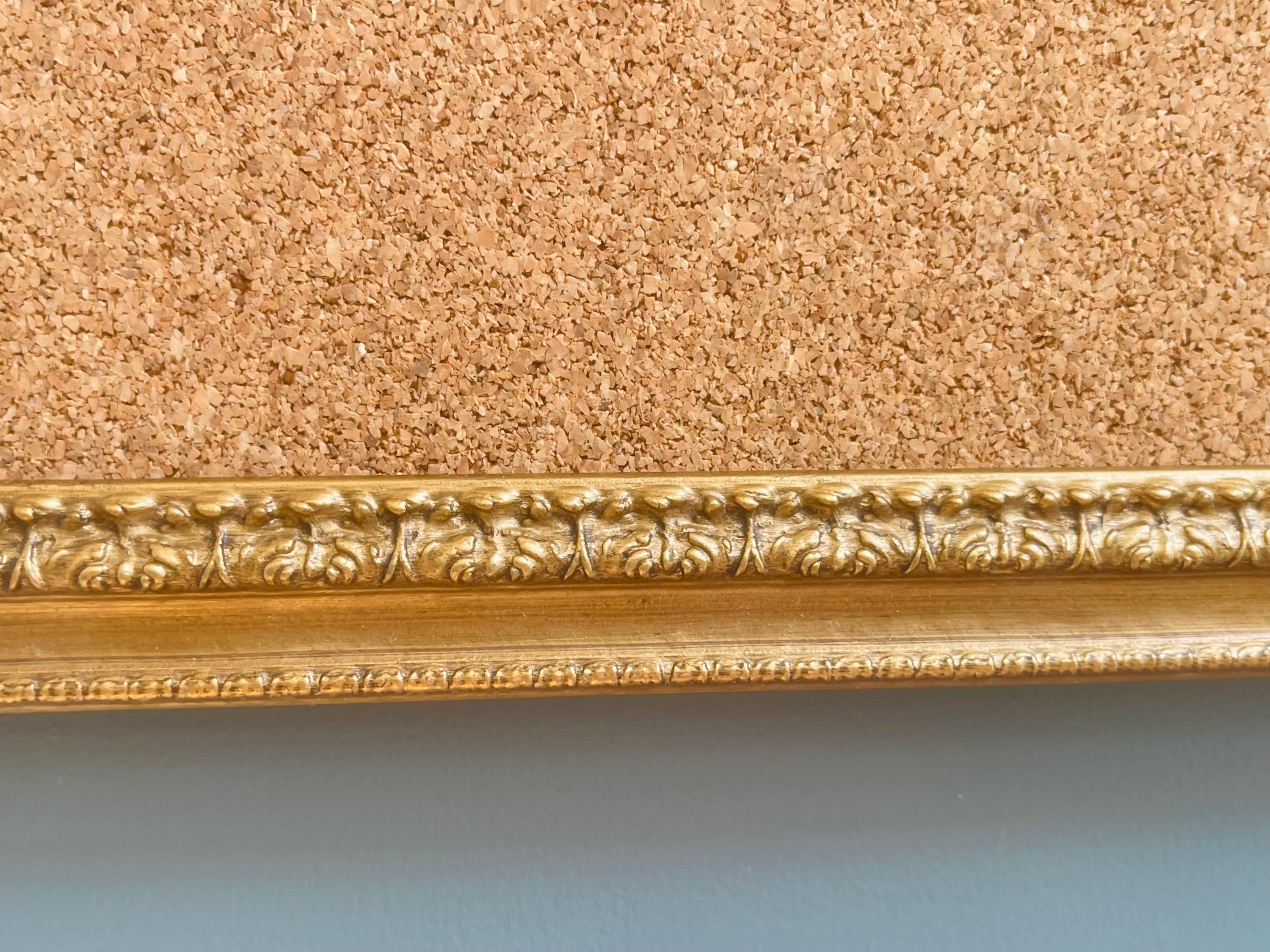 Ornate gold framed pin board. Measuring approx 64 x 84cm.